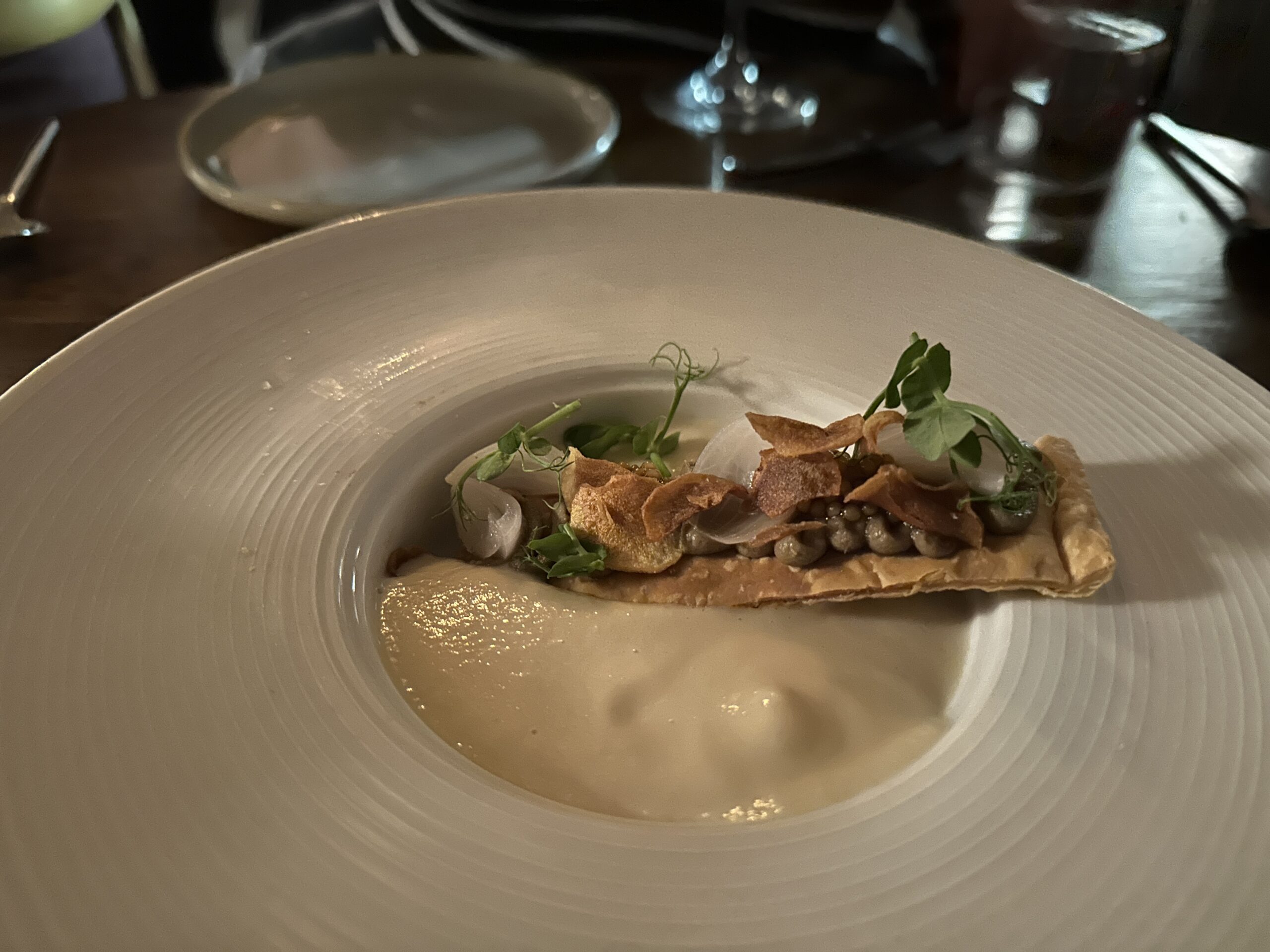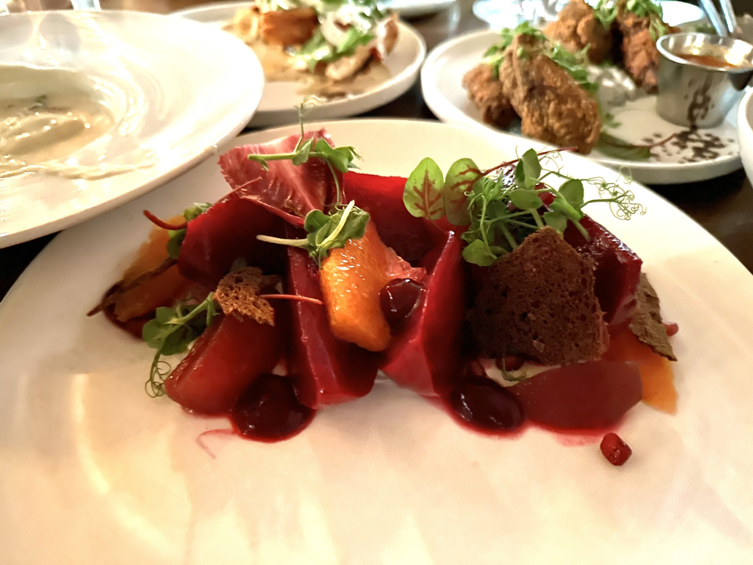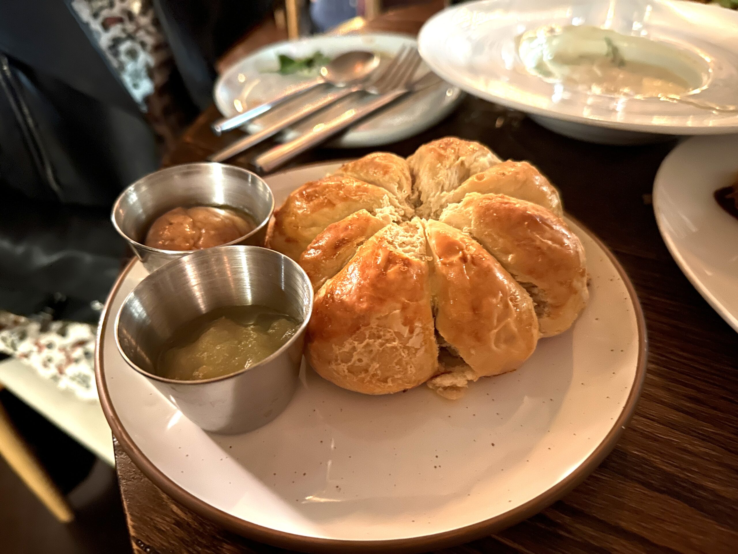 The starters are a testament to the restaurant’s dedication to craftsmanship. The House Made Brioche Buns arrive warm, the buttery layers practically dissolving on the tongue. The Chicken Liver Parfait is a symphony of smoothness, with a richness that is perfectly countered by the tang of strawberry jam. The Sunchoke Velouté, a silken soup that is both comforting and luxurious, caresses the palate with its creamy texture and earthy undertones.