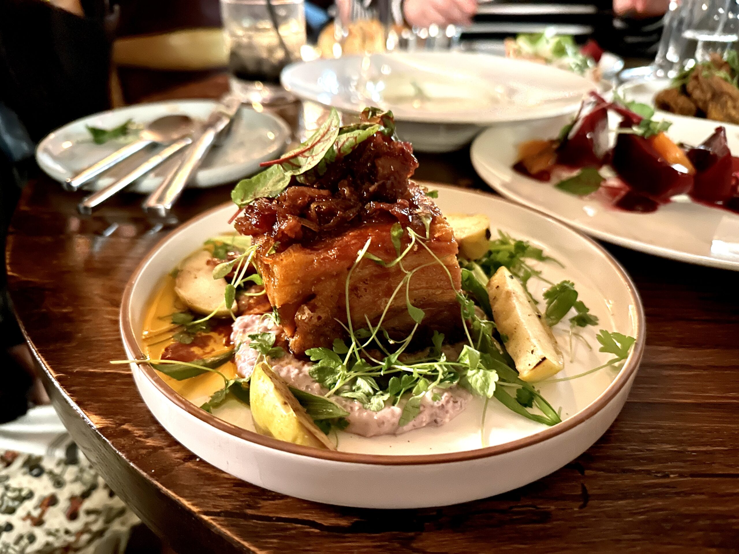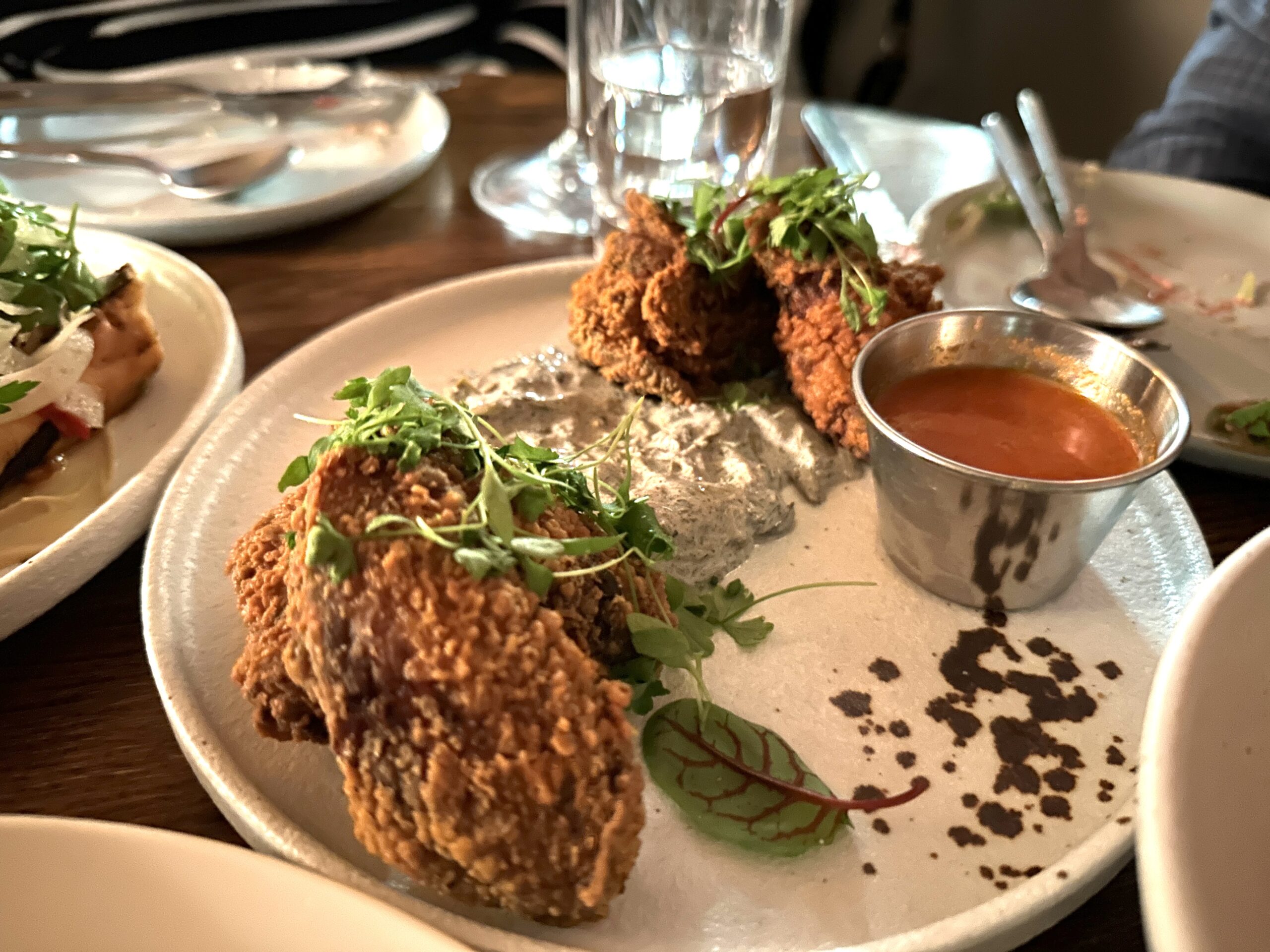 For the main courses, the Green Meadows Pork Belly is a standout, its perfectly rendered fat giving way to meat that is both succulent and flavorful. The Buttermilk Fried Chicken, a dish that could easily be mundane in less capable hands, is transformed into a crunchy, golden-brown delight, each piece tender and infused with an ideal blend of spices.