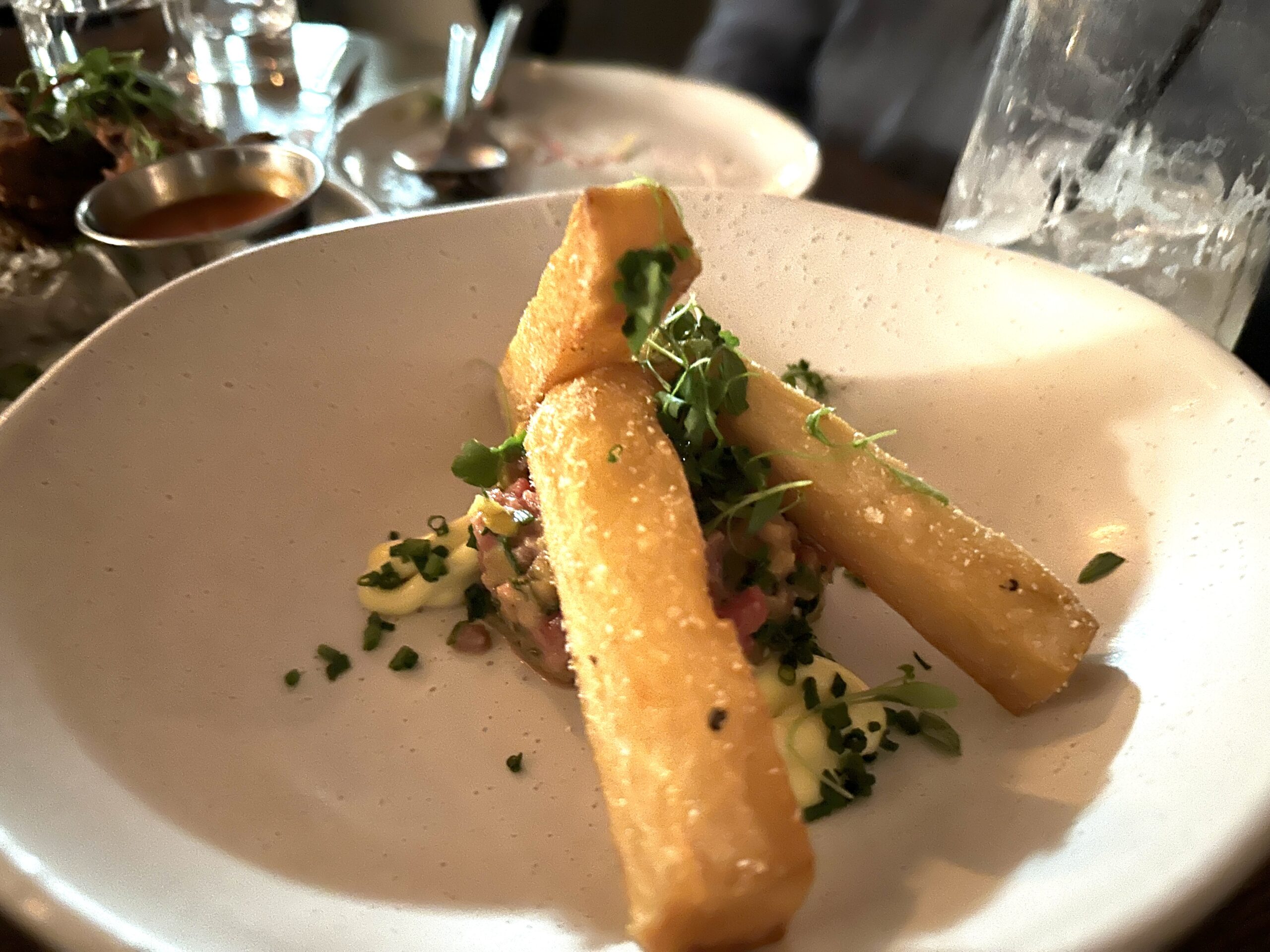 The “Steak and Frites” Tartare is an ingenious twist on the beloved bistro classic, staying true to its roots with succulent filet mignon at its heart. This dish is a bold statement on the menu, showcasing the kitchen’s flair for elevating traditional fare. Each forkful is a delicate harmony of flavors: the savory depth of the beef is complemented by the subtle tang of salt and vinegar potatoes, while sweet pickles add a gentle, refreshing crunch. The thyme beef fat aioli is the pièce de résistance, a rich and herbaceous emulsion that binds all the elements together into a truly memorable dish. It’s a creation that honors the culinary heritage from which it draws, while confidently asserting its own contemporary identity.
