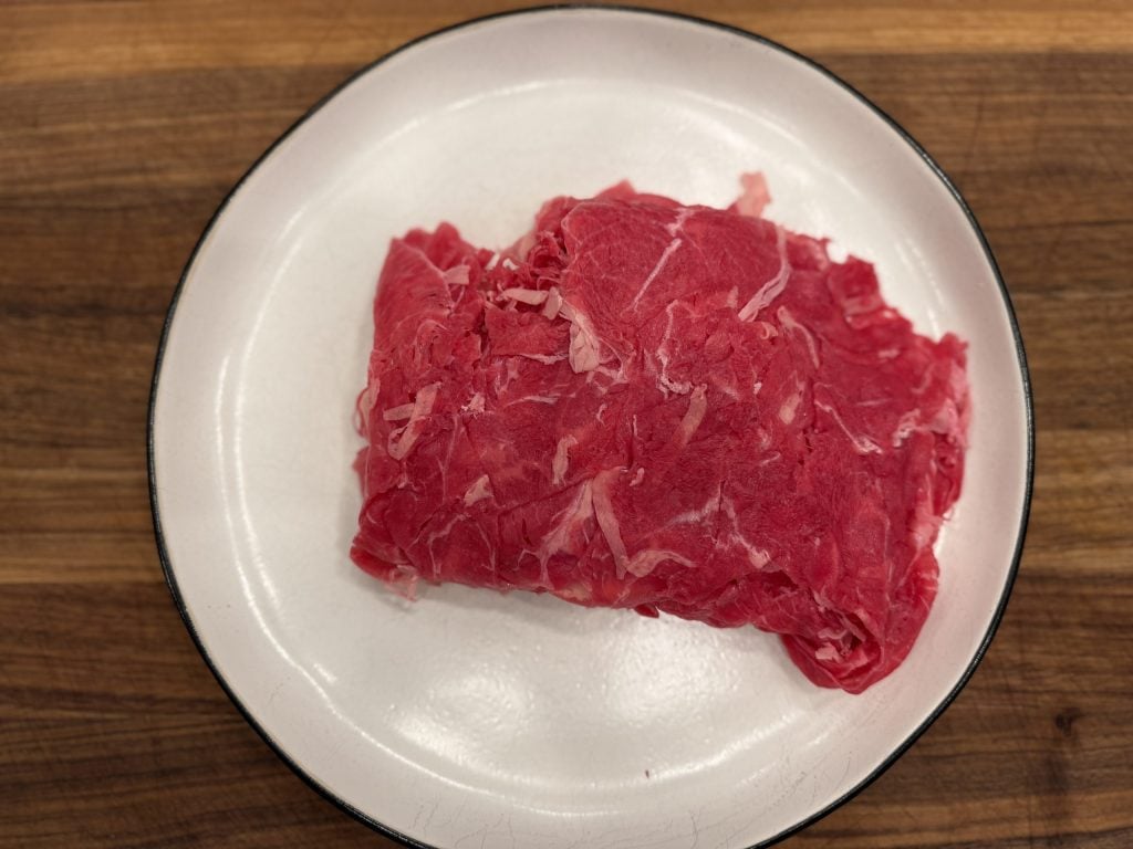 But I know that’s not the case everywhere. If your store doesn’t stock shaved beef, you’ve got options. You can ask your butcher to slice it thin for you (they’ve got the equipment to do it right), or you can do it yourself at home. If you’re slicing your own, stick the beef in the freezer for about 20 to 30 minutes first. You want it firm but not frozen solid. Then use a sharp knife and slice against the grain as thin as you possibly can.