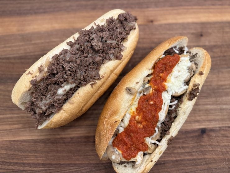 Don’t overthink it. A cheesesteak is a simple sandwich. Beef, cheese, onions if you want them, good roll. That’s it. Don’t add a bunch of stuff that doesn’t belong.